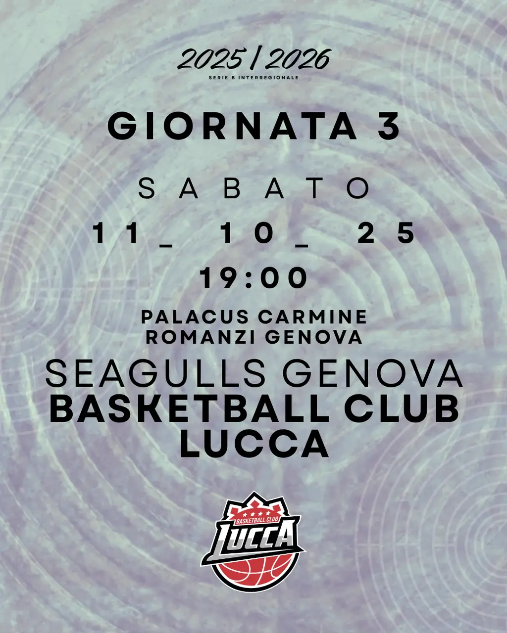 Palla a due alle ore 19:00 di sabato 11 ottobre al Palaxus Carmoine Romanzi di Genova, ad arbitrare l’incontro sanna i Sig.ri Dell’Accio e Pittatore di Torino, quest’ultimo il BCL lo ha avuto in trasferta contro Pavia e in casa contro il Dany Basket Quarrata.